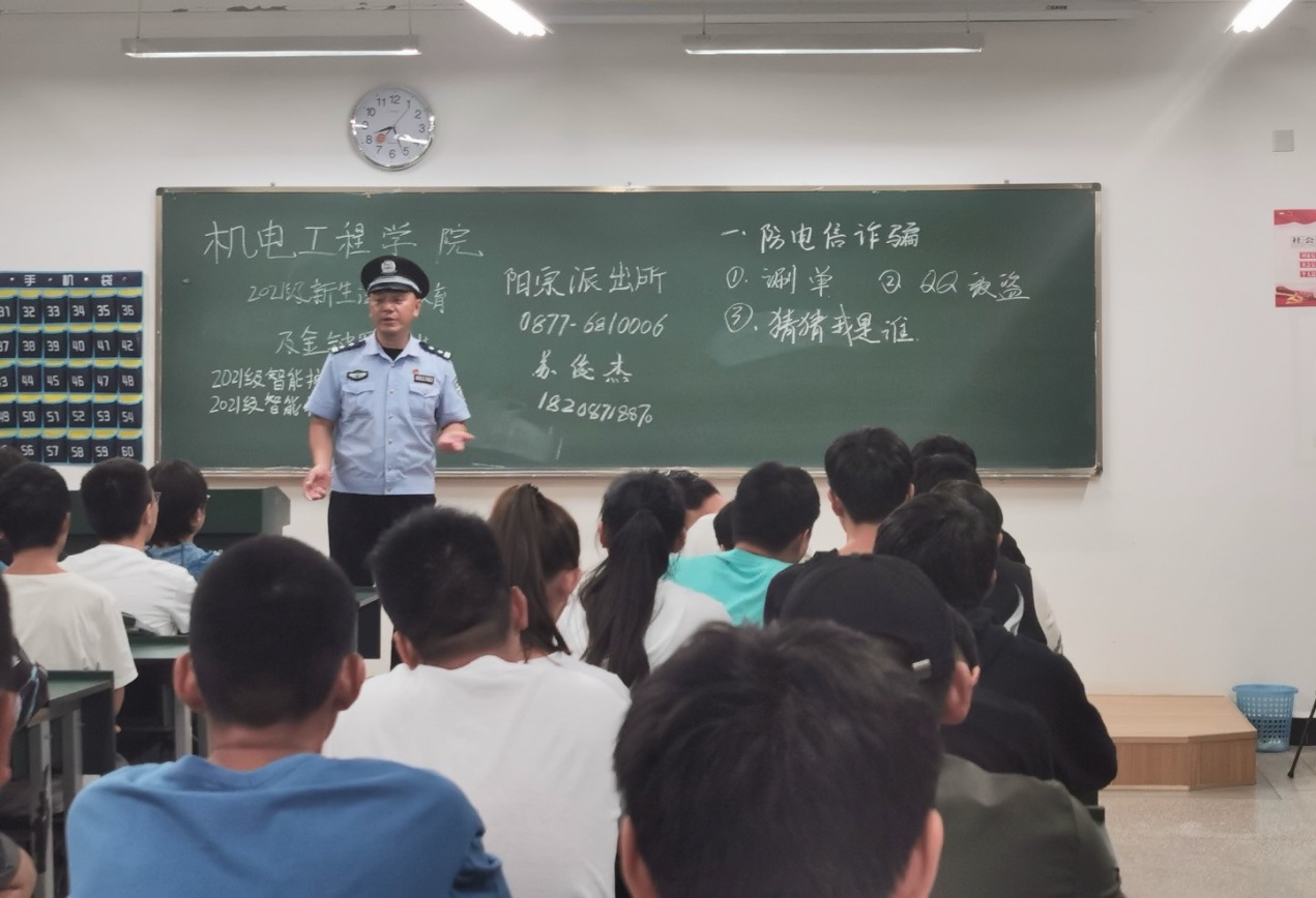 为做牢、做实校园安全工作,提高机电学子的安全防范意识,真正为学生办实事,成人网站免费观看在学校保卫处的带领下,于9月16日18:50在崇实楼、笃行楼教室针对2021级全体新生,开展了法制教育及“金钟罩”的安装指导。本次宣传教育讲座有幸邀请到阳宗派出所的10余名工作民警进行现场宣讲,成人网站免费观看党总支书记王春莲、副书记陈伟及全体辅导员老师共同组织并配合宣传。