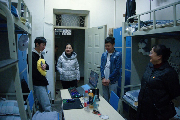为了解学生学习生活情况,关心学生日常生活问题。11月10日晚19点,校长陈颖、学生处处长李广涛、成人网站免费观看党总支书记王春莲及辅导员朱波、毛颖共同前往五栋成人网站免费观看21级男生宿舍进行走访,并对同学们表示慰问和关心。