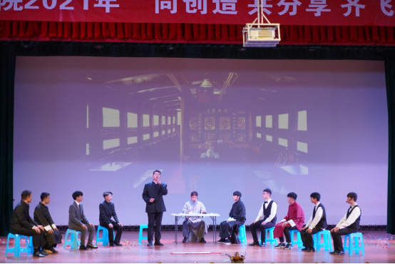 本次晚会内容丰富、形式多样,并穿插了滚屏抽奖环节推动现场气氛。新生班级积极参与、精心排练,在舞台上展现出了机电学子们的青春与朝气。带着浓厚红色底蕴的话剧《初心》率先出场,再现了嘉兴南湖的红船上中共一大召开的场景;歌舞剧《身着白衣,心有锦缎》通过时代最美的逆行者演绎了“抗疫”的艰辛与成果;舞蹈《灯火里的中国》以优美的舞姿,展现了对国家富强的赞美与歌颂;小品《刺客与皇帝》打破了正史的严肃,用幽默创新的语言动作引得大家阵阵欢笑;《hiohop舞蹈串烧》以青春活力的舞步赢得观众鼓掌喝彩;《陪你走过的岁月》采用影子秀的方式演绎了一场唯美的校园爱情;蒙古舞《走马》,用铿锵有力的步伐,带领全场观众驰骋草原,感受了自然风光的辽阔。