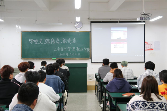 为深入贯彻习近平总书记在党史学习教育动员大会上的重要讲话精神,按照我校党史学习教育要求,2021年3月21日下午13:50,成人网站免费观看全体团干部在崇实楼215教室参加“学党史、强信念、跟党走”的党史专题讲座。本次讲座由成人网站免费观看团总支副书记何晓洪主持召开。
