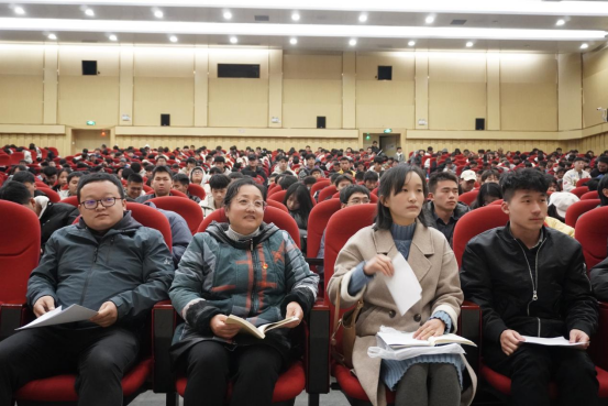 宣讲会前,吴兴虎同志指出学习理论知识不仅可以拓宽知识面,丰富自身内涵,还可以提高自我认知,坚定理想信念。他还对宣讲会“学什么,为什么要学,怎样学”作出了阐释,希望同学们专心听讲,遵守会议纪律。